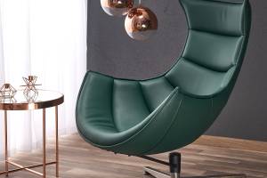 Fotoliu GREEN LUXOR rotativ, ecopiele verde, cu design contemporan, picioare crom, confortabil 86x94xH96cm