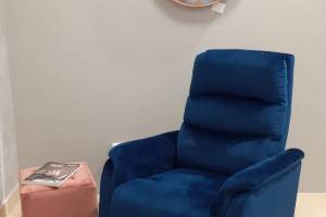 Fotoliu JOWISZ VELVET cu reclier manual, catifea albastra, spatar reglabil, confortabil 78x98-160xH102cm