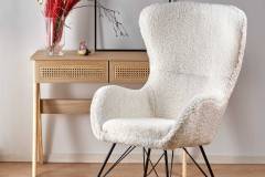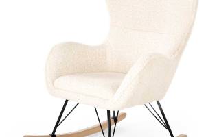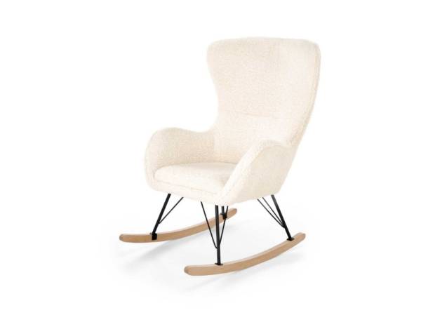 Fotoliu LIBERTO 2 cu functie de balansare, material plusat crem, picioare nuanta lemnului + negru 72x100xH106cm