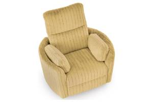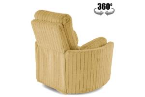 Fotoliu PEGAS rotativ cu recliner electric, incarcare USB integrata, functie de balansoar, material plusat curry, confortabil 110x110-170xH81-108cm