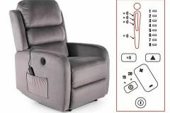 Fotoliu PEGAZ M VELVET cu recliner electric, functie de masaj, buzunar pentru depozitare, confortabil, catifea gri 64x88-160xH102cm