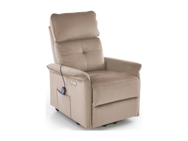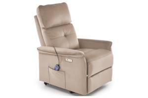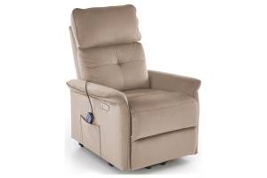 Fotoliu SEMIR 2 cu recliner electric, functie de masaj, port USB, buzunar pentru depozitare, confortabil, catifea beige 80x90xH108cm