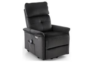 Fotoliu SEMIR 2 cu recliner electric, functie de masaj, port USB, buzunar pentru depozitare, confortabil, catifea black 80x90xH108cm