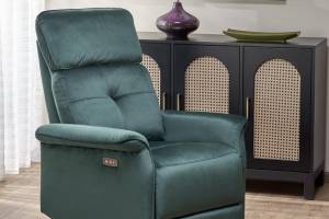 Fotoliu SEMIR cu recliner electric, port USB, confortabil, catifea green 80x90xH108cm