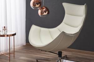 Fotoliu WHITE LUXOR rotativ, ecopiele alba, cu design contemporan, picioare crom, confortabil 86x94xH96cm