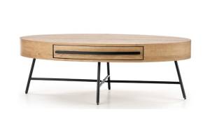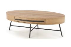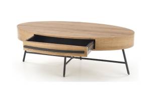 Masuta CAROLINA cu sertar pentru depozitare, din MDF furniruit nuanta lemnului, metal negru 120x60xH41cm