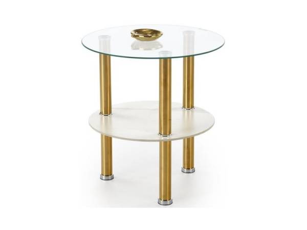 Masuta DUCAT S din sticla transparenta, sticla cu efect de marmura alba, metal auriu 45xH49cm