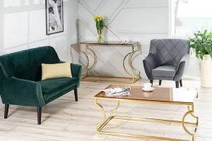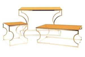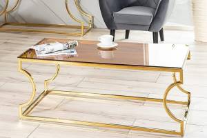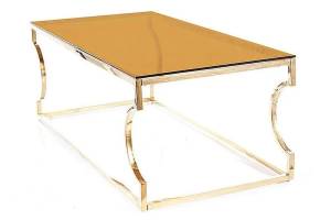 Masuta KENZO A din sticla securizata chihlimbar, metal auriu 120x60xH40cm