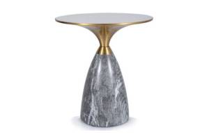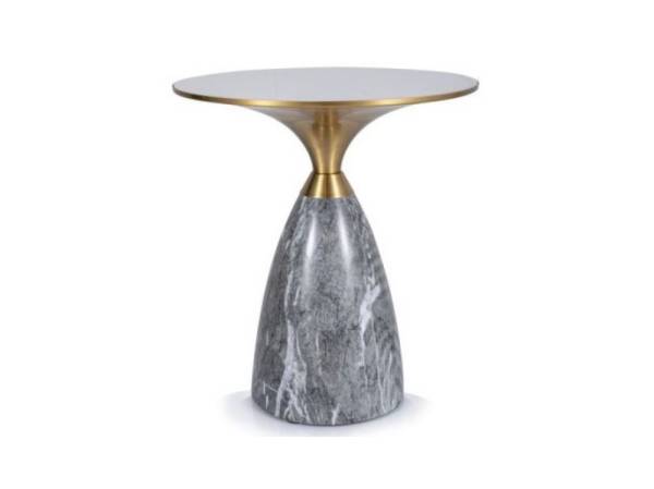 Masuta LEO din ceramica cu efect de marmura alb lucios + gri, metal auriu 50xH54cm