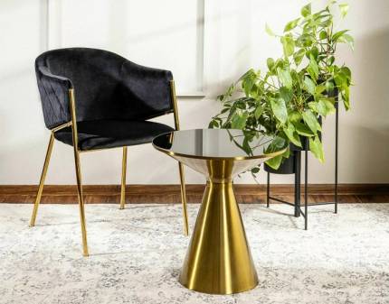 Masuta SETI din sticla securizata neagra, metal auriu 50xH53cm