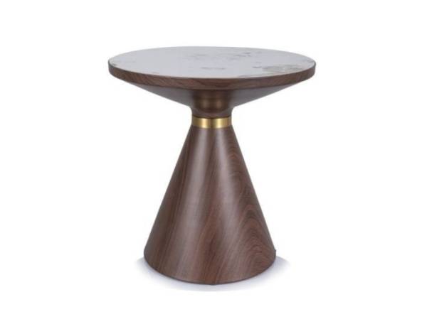 Masuta NAPA B din ceramica cu efect de marmura alb lucios, lemn maro, metal auriu 50xH53cm