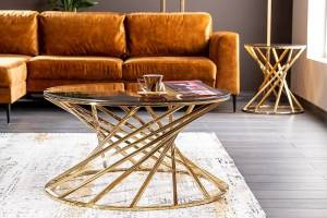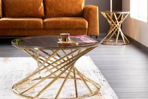 Masuta OTTAVIA A din sticla securizata chihilimbar, metal auriu 80xH43cm