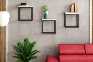 Masuta - raft suspendat DURO din PAL Egger, metal negru 30x18xH33cm