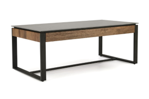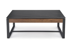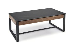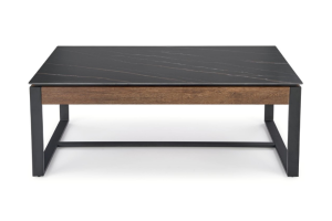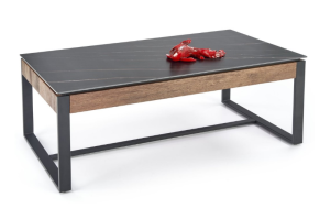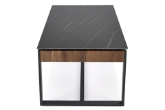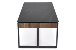 Masuta RAMONA din MDF furniruit si sticla termorezistenta cu efect de marmura neagra, metal negru 121x61xH45cm