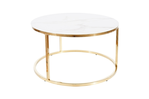 Masuta SABINE din sticla cu efect de marmura alba, metal auriu 80xH45cm