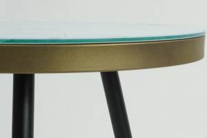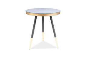 Masuta VEGA C din sticla cu efect de marmura alba, furnir, metal auriu + negru 45xH50cm