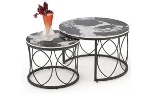 Set 2 masute ALEXANDRA din ceramica cu efect de marmura neagra, metal negru 70xH46cm / 50xH41cm