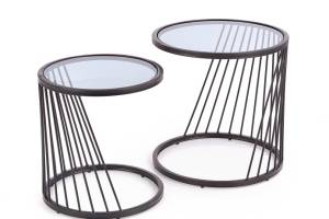 Set 2 masute ANTILLA din sticla transparenta, metal negru 50xH50cm / 42xH45cm