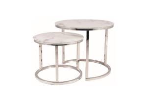Set 2 masute ATLANTA B II din sticla cu efect de marmura alba, metal crom 53xH45cm / 43xH35cm