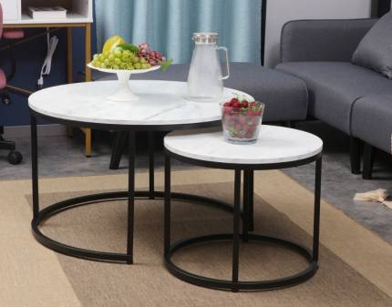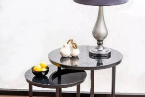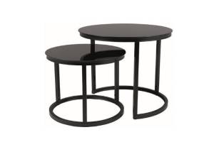 Set 2 masute ATLANTA D II din sticla neagra, metal negru 53xH45cm / 43xH35cm