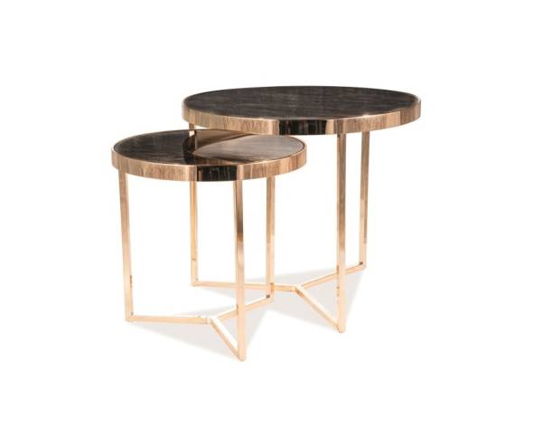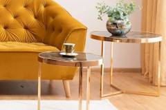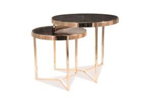 Set 2 masute DELIA II GOLD din sticla securiazata cu efect de marmura, metal auriu 45xH45cm / 59xH52cm