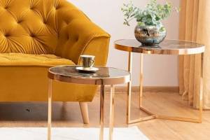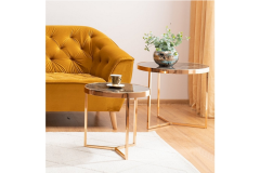 Set 2 masute DELIA II GOLD, cu blat din sticla cu efect de marmura si finisaj auriu, aduc eleganta si rafinament oricarui decor. Design modern si sofisticat, ideale pentru livinguri contemporane. Calitate premium, perfecte pentru un ambient luxos si functional.