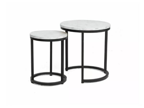 Set 2 masute HOLA WHITE, cu blat din PAL cu efect de marmura alba si cadru negru mat. Design modern si rafinat, perfect pentru un decor elegant si contemporan!