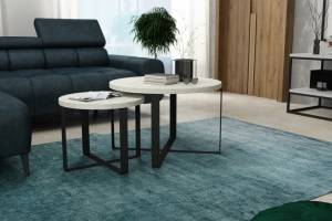 Set 2 masute KODO din PAL Egger, metal negru 41x41xH34cm / 60x60xH39cm