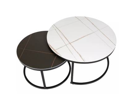 Setul de 2 masute KODO aduce eleganta si functionalitate in casa ta. Disponibile in nuante: Light Marble, Dark Marble, Grafit si Stejar Natural, cu blat din Pal Egger sau lemn de stejar si cadru metalic de 20mm, vopsit negru cu pulbere. Ideal pentru interioare moderne si versatile!