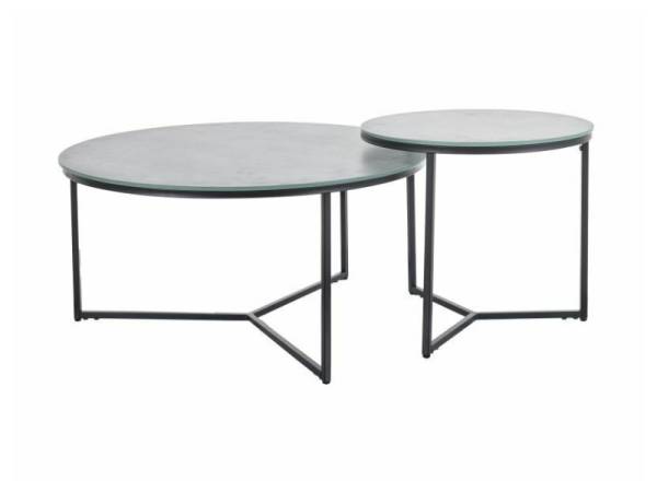 Set 2 masute PALERMO II din sticla securizata cu efect de marmura gri, metal negru 50xH45cm / 80xH40cm