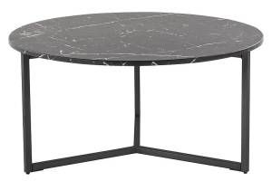 Set 2 masute RAVELLO din sticla cu efect de marmura neagra, metal negru 80xH40cm / 50xH55cm