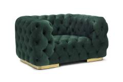 Set canapea 3 locuri + fotoliu CHESTER VELVET fixa, catifea verde 242x97cm / 130x97cm