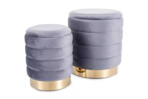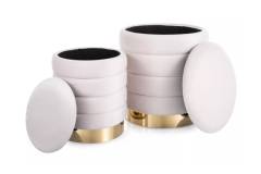 Set 2 tabureti BRITTA VELVET cu spatiu pentru depozitare, catifea, cadru auriu 40xH45cm