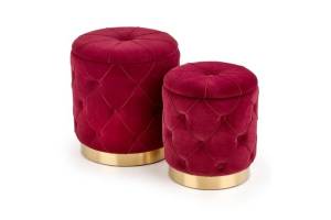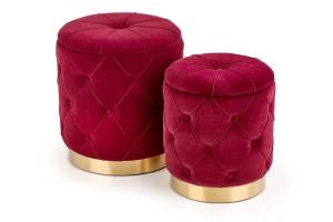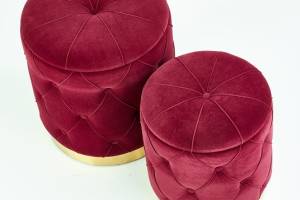 Set 2 tabureti POLLY catifea bordo, cu spatiu pentru depozitare 40xH44cm / 33xH38cm
