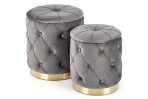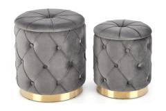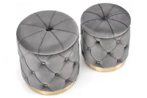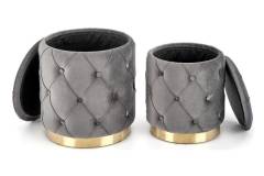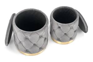 Set 2 tabureti POLLY catifea gri, cu spatiu pentru depozitare 40xH44cm / 33xH38cm